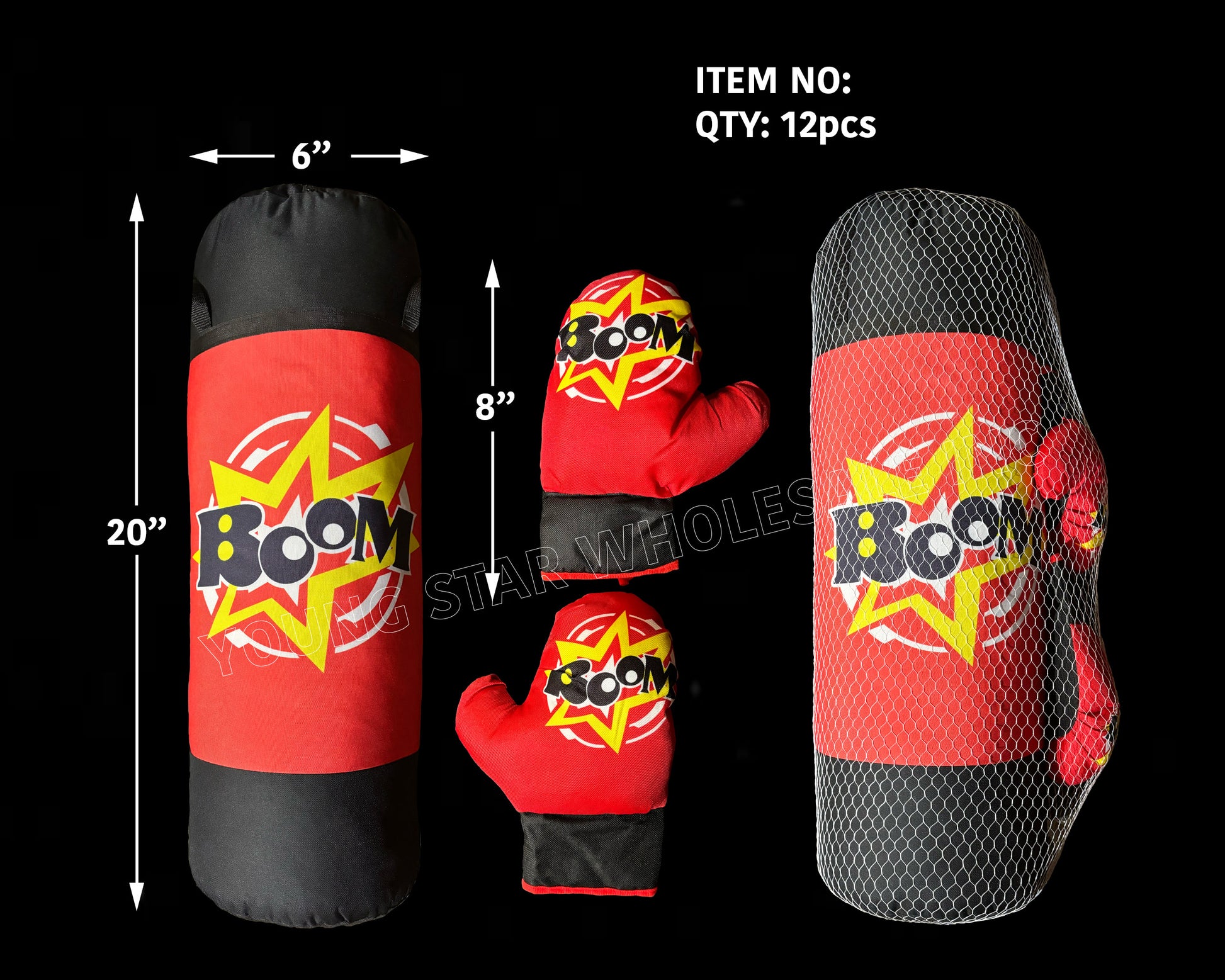 High-quality bulk wholesale of boxing punching bags with gloves. These sets of boxing bags are great for young kids to stay active. These sets of boxing bags are ideal for practice or training purposes or just a fun item to get kids active. These boxing sets are available in different shapes and styles. Select what your store needs for success.
