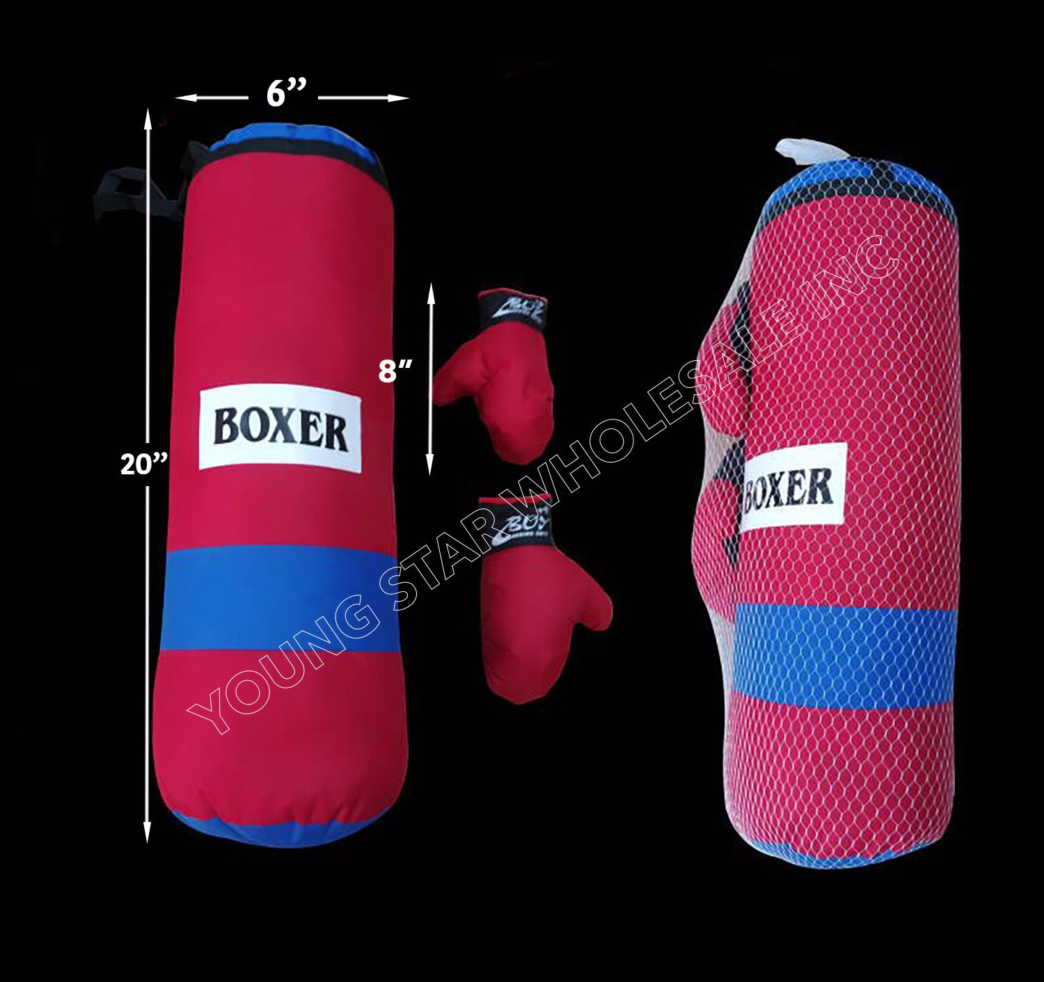 High-quality bulk wholesale of boxing punching bags with gloves. These sets of boxing bags are great for young kids to stay active. These sets of boxing bags are ideal for practice or training purposes or just a fun item to get kids active. These boxing sets are available in different shapes and styles. Select what your store needs for success.