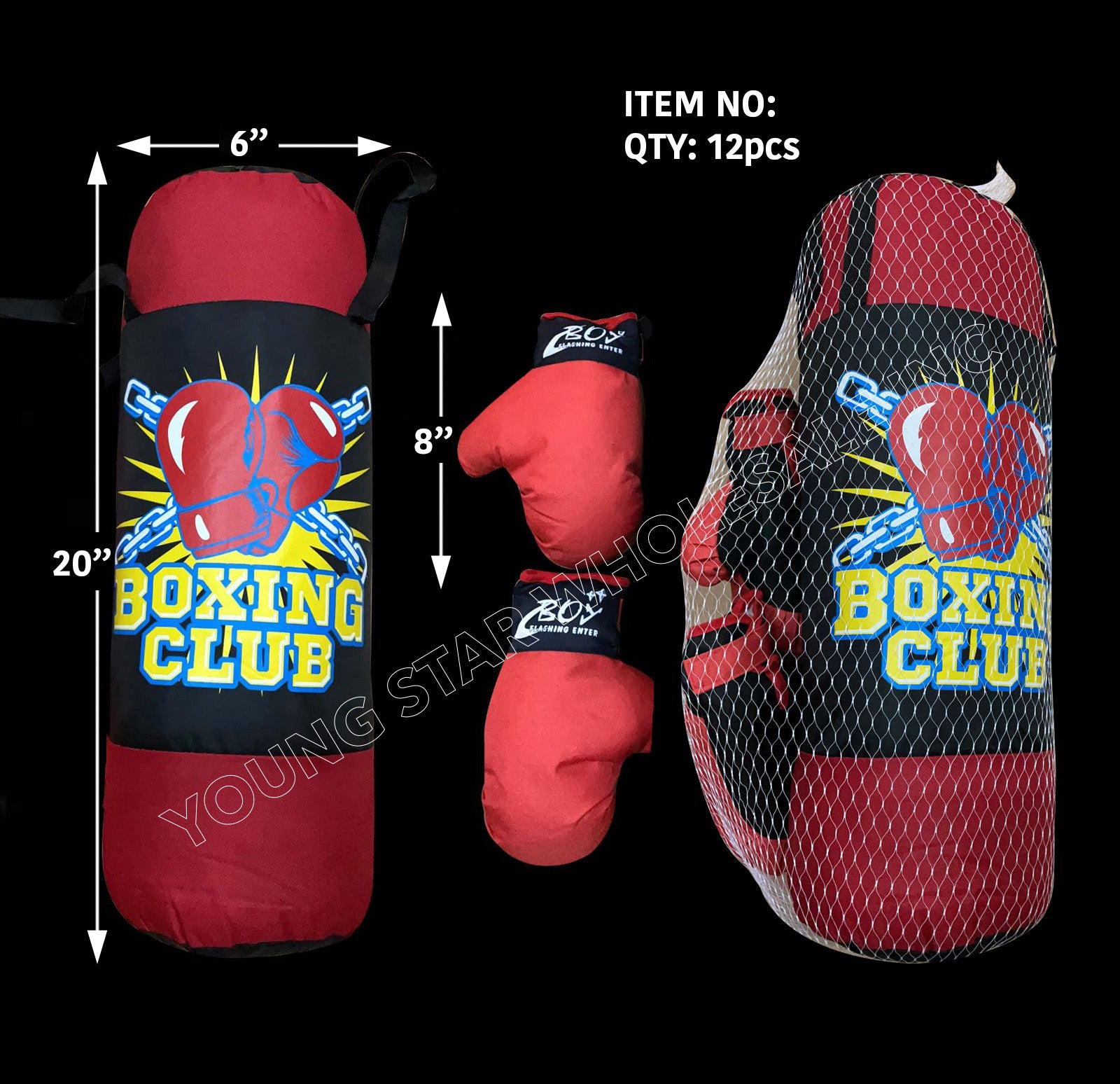 High-quality bulk wholesale of boxing punching bags with gloves. These sets of boxing bags are great for young kids to stay active. These sets of boxing bags are ideal for practice or training purposes or just a fun item to get kids active. These boxing sets are available in different shapes and styles. Select what your store needs for success.
