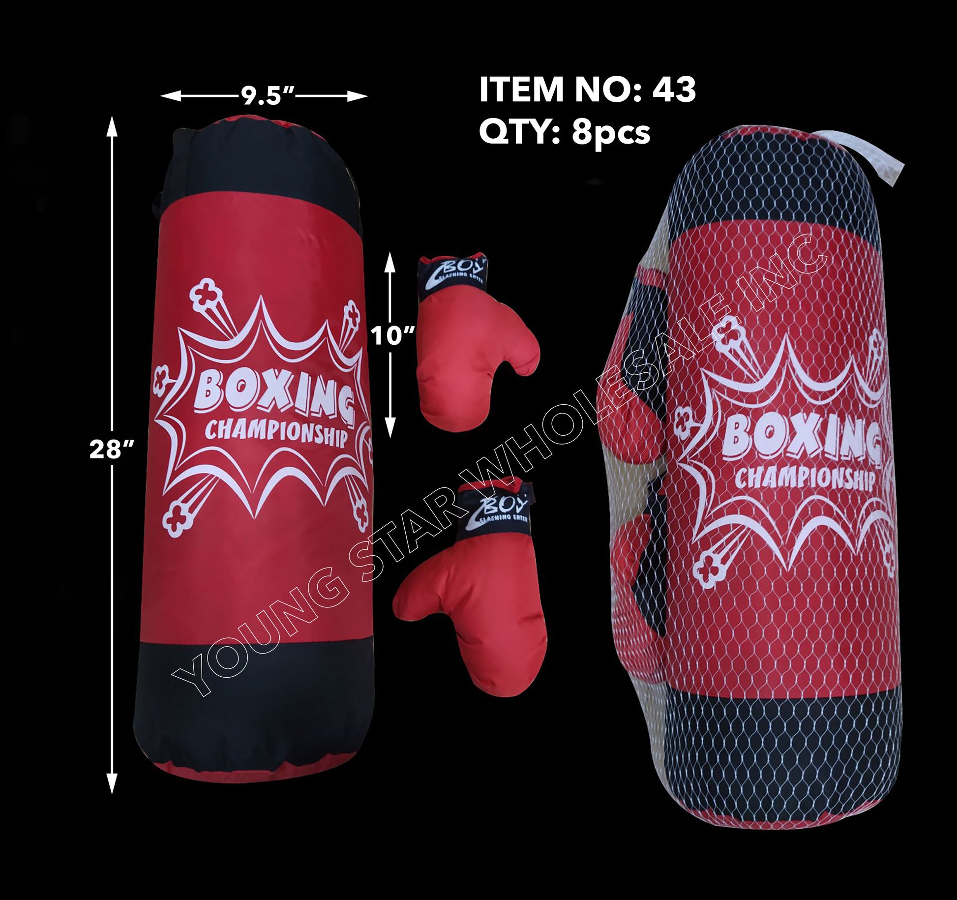 High-quality bulk wholesale of boxing punching bags with gloves. These sets of boxing bags are great for young kids to stay active. These sets of boxing bags are ideal for practice or training purposes or just a fun item to get kids active. These boxing sets are available in different shapes and styles. Select what your store needs for success.
